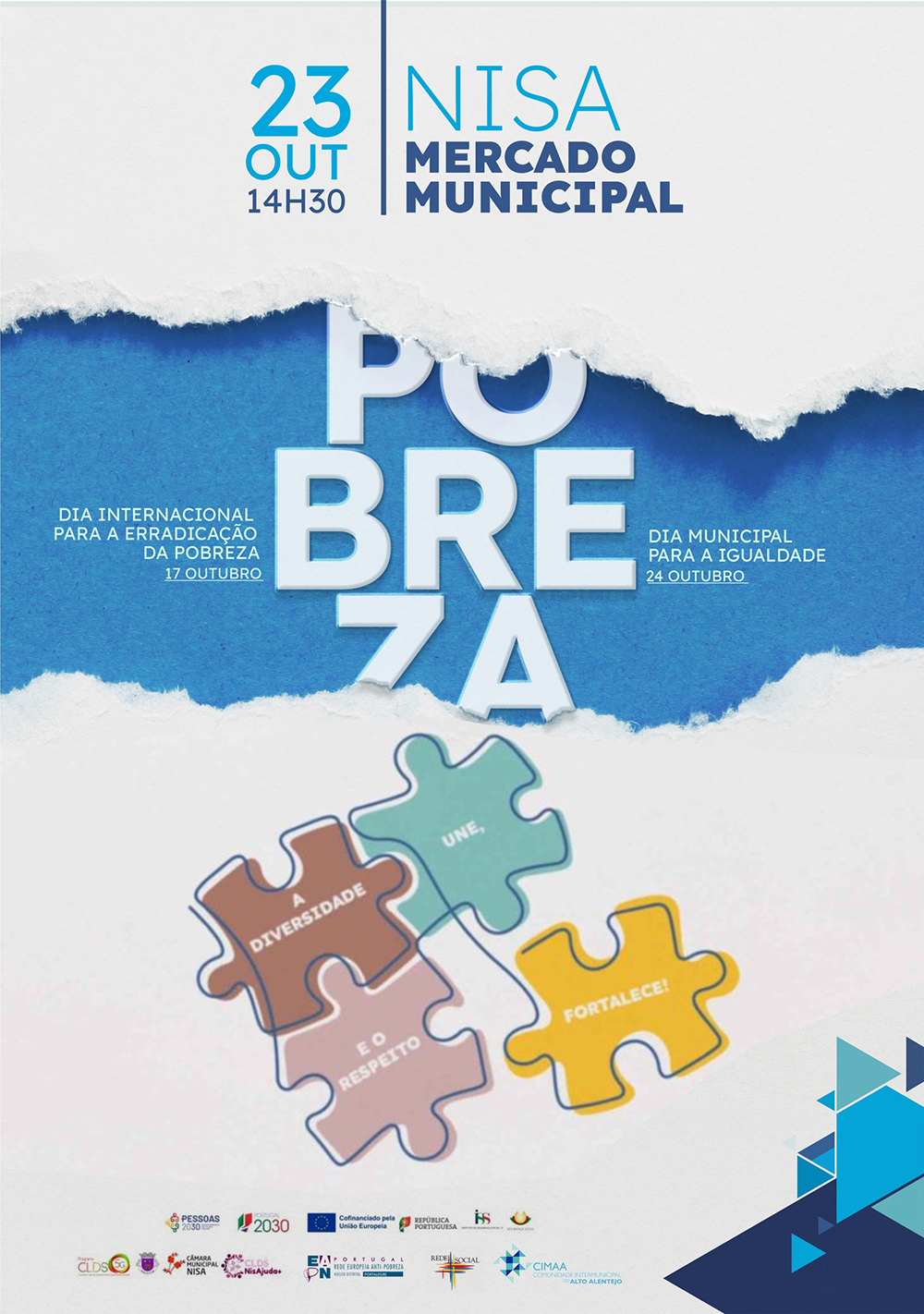 A Câmara Municipal de Nisa associa-se à Rede Social do Distrito de Portalegre e assinala esta quinta-feira, pelas 14h30m, no Mercado Municipal, o Dia Internacional para a Erradicação da Pobreza e da Exclusão Social e o Dia Municipal para a Igualdade.