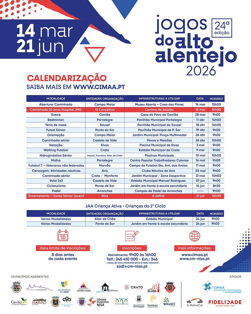 Mais informações em: www.cm-nisa.pt ou www.cimaa.pt