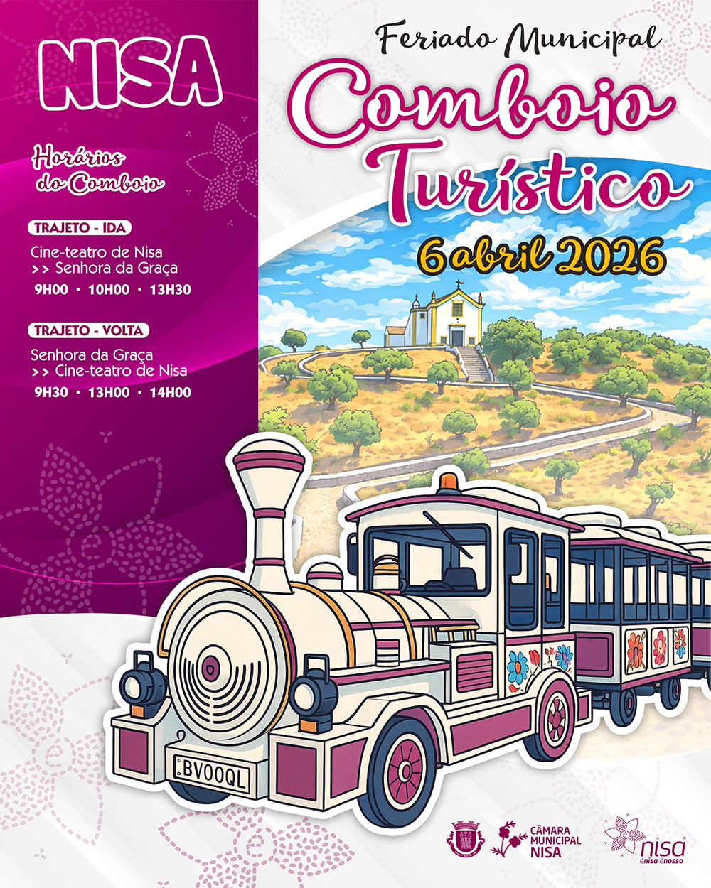 No âmbito do Feriado Municipal, a Câmara Municipal de Nisa disponibiliza o Comboio Turístico para facilitar o acesso à tradicional Romaria de Nossa Senhora da Graça, no dia 6 de abril de 2026.