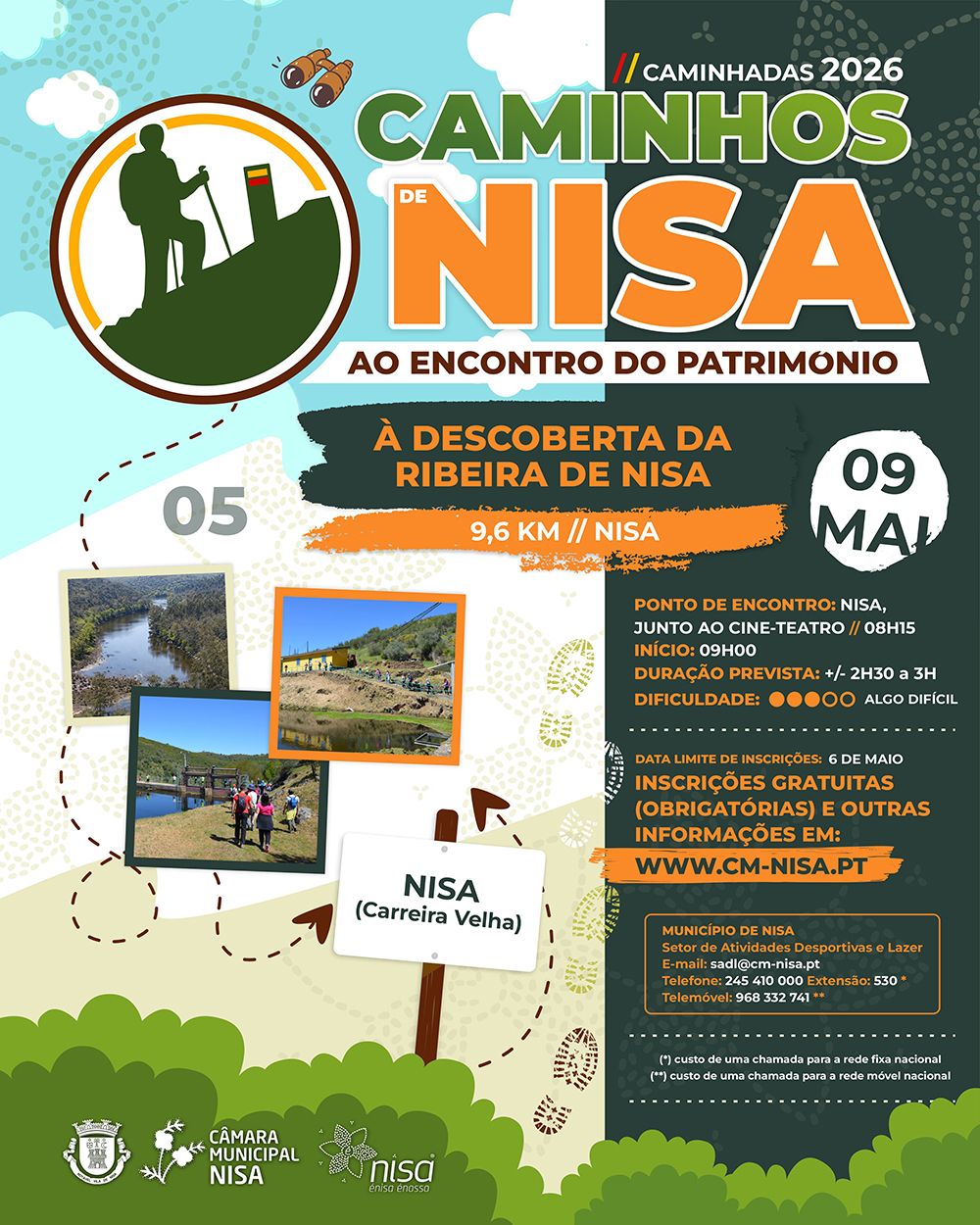 O Município de Nisa dá continuidade ao programa «Caminhos de Nisa ao Encontro do Património – Caminhadas 2026», promovendo a caminhada «À Descoberta da Ribeira de Nisa».